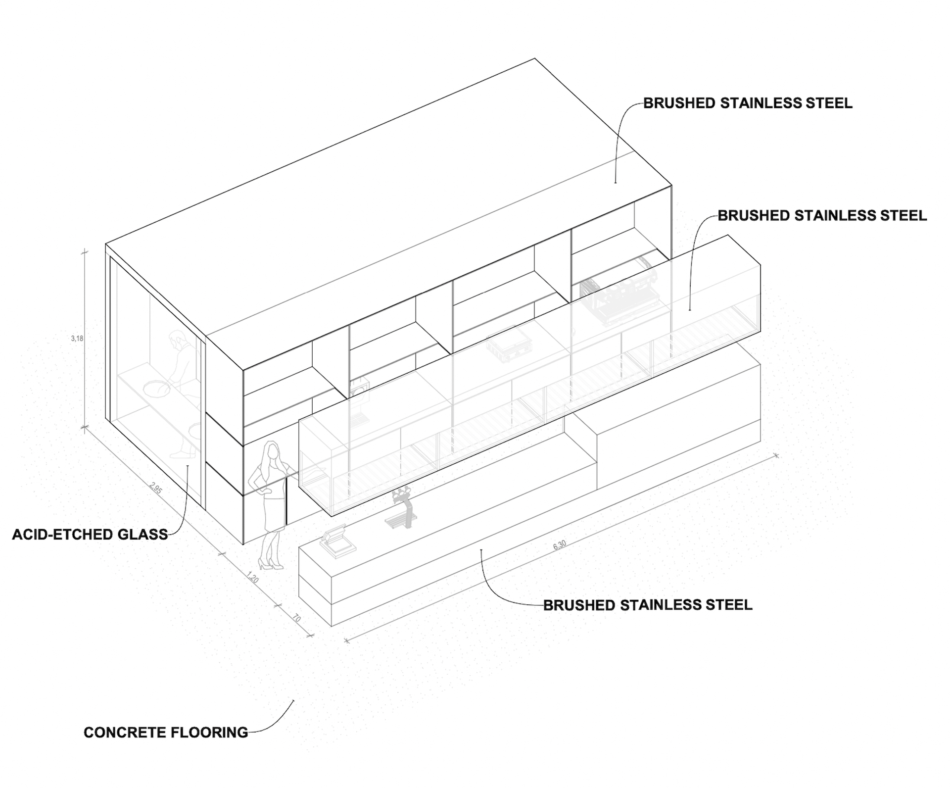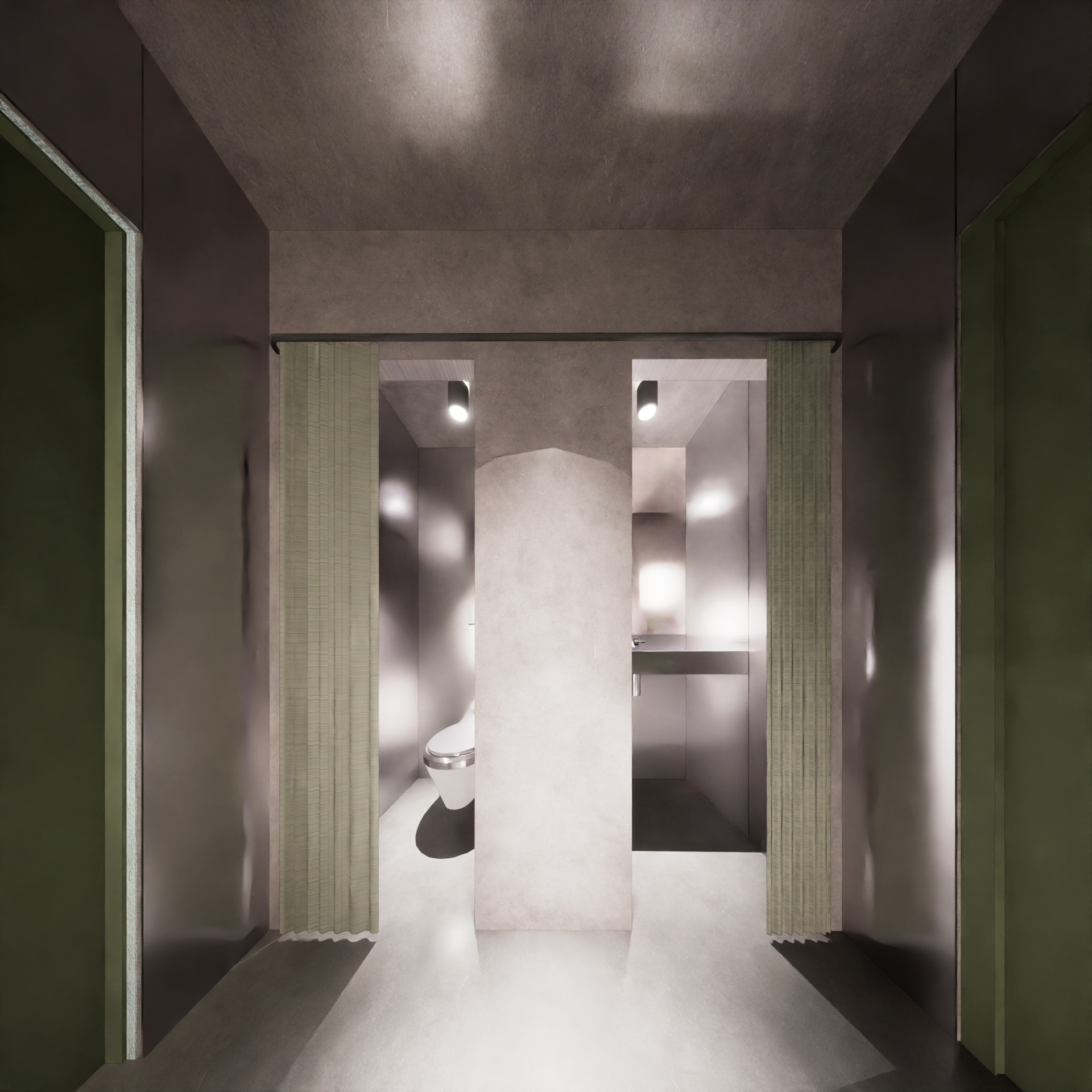 In line with the Small campus design, we emulated its subsequently built quality of the bar-restroom box by using metal finishes like those on the new annexes’ exterior.